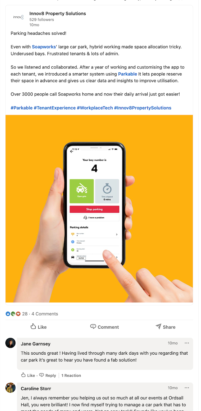 Integrating Parkable’s platform changed everything: the property automated problem-solving, tracked usage, and added ANPR for seamless access.
