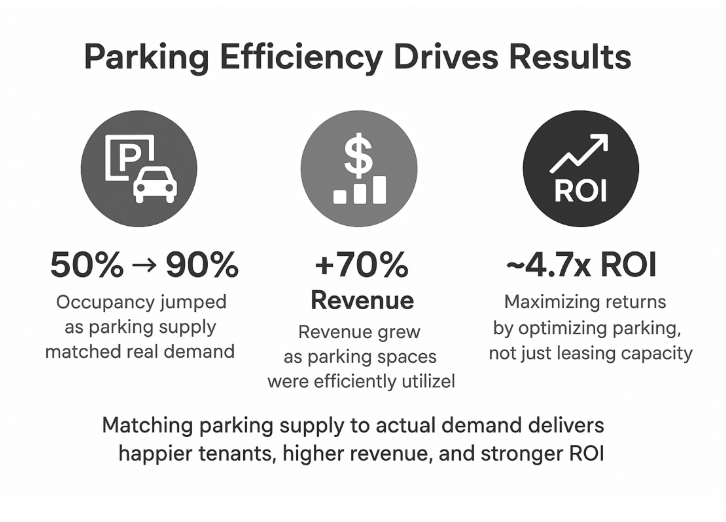 Together, Reserve → Share → Reclaim improves tenant experience, cuts admin time, and boosts paid-day usage — making parking a real asset, not just a line on a balance sheet.
